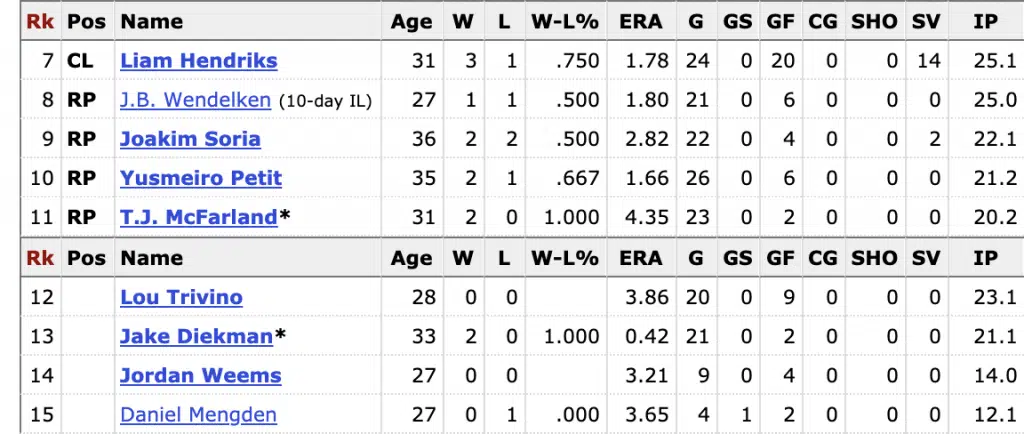 Liam Hendriks is the star here, and rightfully so. The all-star closer boasts one of the best Statcast profiles in the game and an absurd 12.18 K/BB ratio. Dylan Cease‘s, for example, is 1.29. The rest of the bullpen is not far behind. Oakland just activated Wendelken (another former White Sox!), and has significant depth anyway.